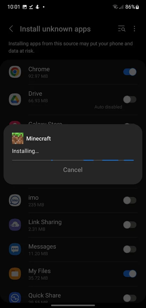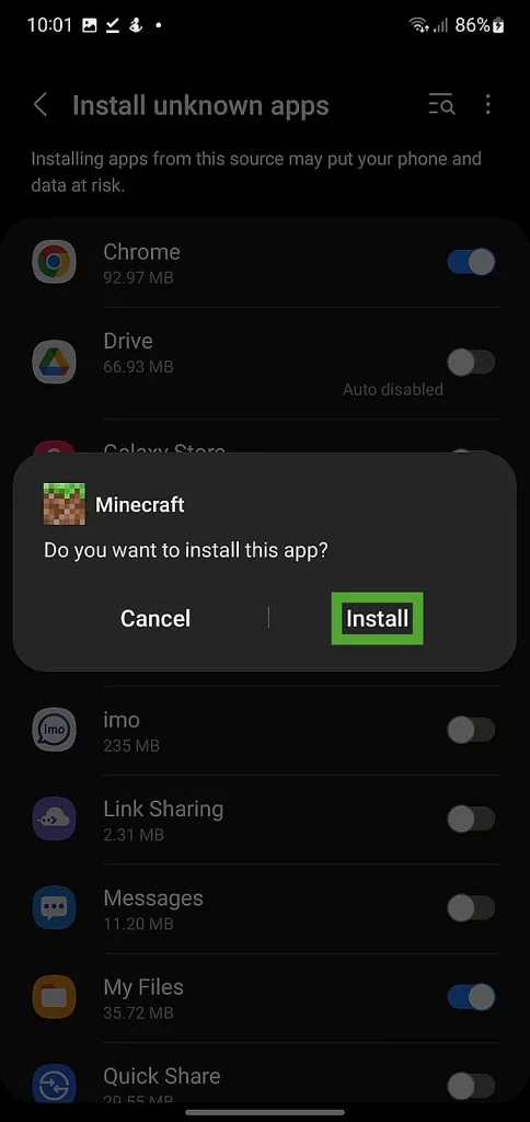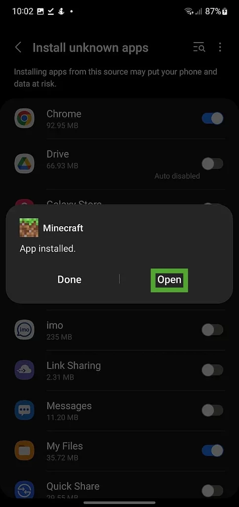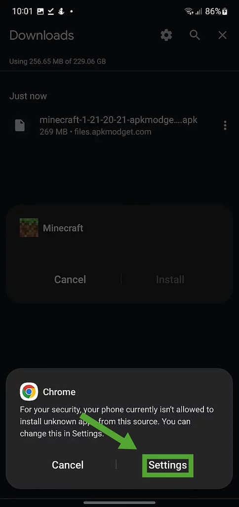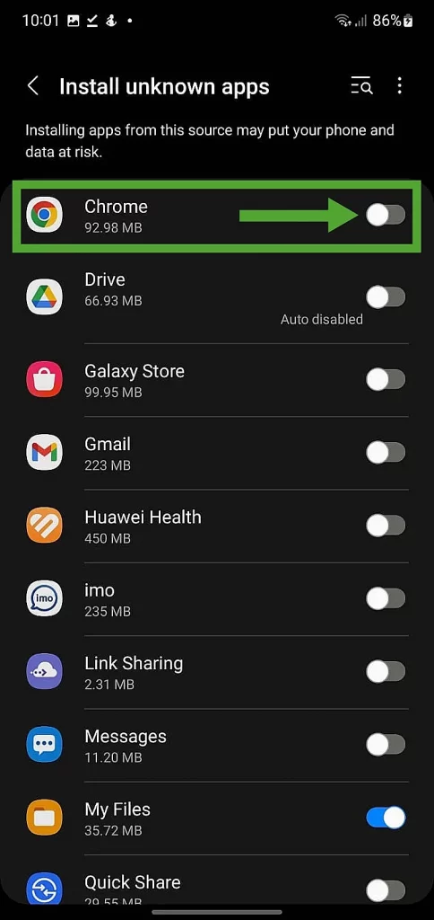 - Tap on Chrome and tap on “allow apps from this source”. This will permit your phone to download any app from Chrome.